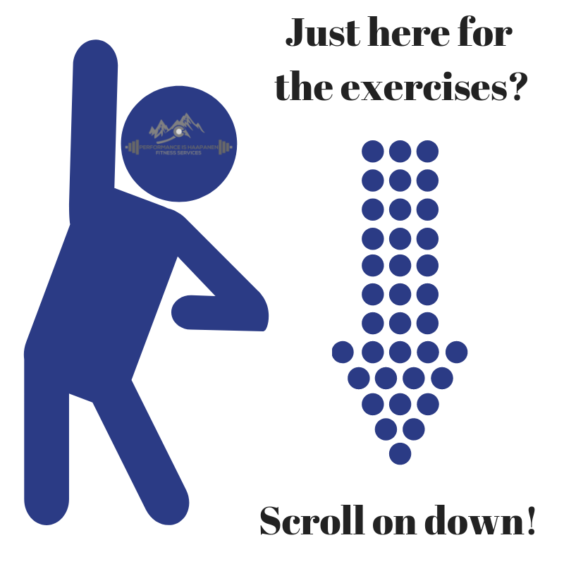 When we sit our hip flexors shorten, we decrease blood flow to our lower extremities, our rib cage compresses, the discs in our back compress, our back weakens...the list goes on. So how can you stay healthy at work? To try and combat some of those issues, I demoed three exercise you can do for your lower body to stay healthy at work. In addition, you’ll get some balance work and “secret core”. As always never go into or through pain; stop if something hurts. Also, try and smile a little. :)
